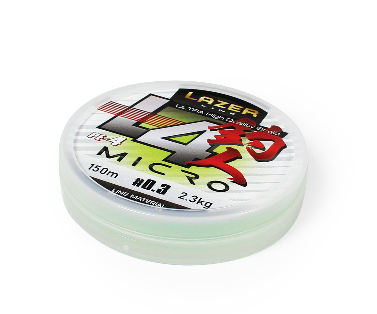 Lazer L4 Micro Fluo Green e 4-нишково PE плетено риболовно влакно от най-висок клас. Произведено от най-добрите 100% UHMW-PE фибри. Изключително здраво и устойчиво, благодарение на супер стегнатата си оплетка. С идеално кръгло сечение и гладка повърхност, позволяващи по-далечни и прецизни замятания, както и по-малко триене и шум от водачите при навиване. Запазва здравината и цвета си дълго време. Финните му размери го правят особено подходящо за всички ситуации, в които са важни финеса и чувствителността.